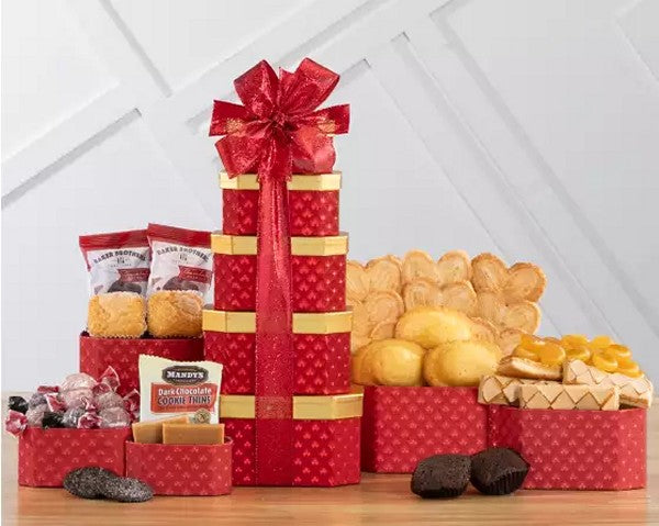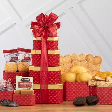 Get ready to indulge in a tower of sweetness and surprises with our Bakery and Sweets Tower Tower! Packed with a variety of delicious treats, this hand-picked gift is the perfect way to convey your best wishes to friends and family. From delectable baked goods to irresistible chocolates and pastries, this tower has it all. Treat someone special today!