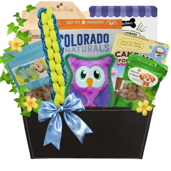 This premium dog gift basket includes a variety of bakery-fresh, belly-pleasing dog biscuits along with durable, playful toys designed to keep pups entertained. It’s the perfect choice for dog get-well gifts, puppy congratulations, obedience school graduations, or celebrating big moments—from new adoptions to impressive achievements.