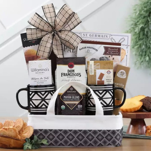 Get your fix with our Coffee and Snack Gift Basket! Perfect for a cozy night in or as a thoughtful gift for a caffeine and snack lover. Satisfy your cravings with a variety of treats and a dose of caffeine in one basket!